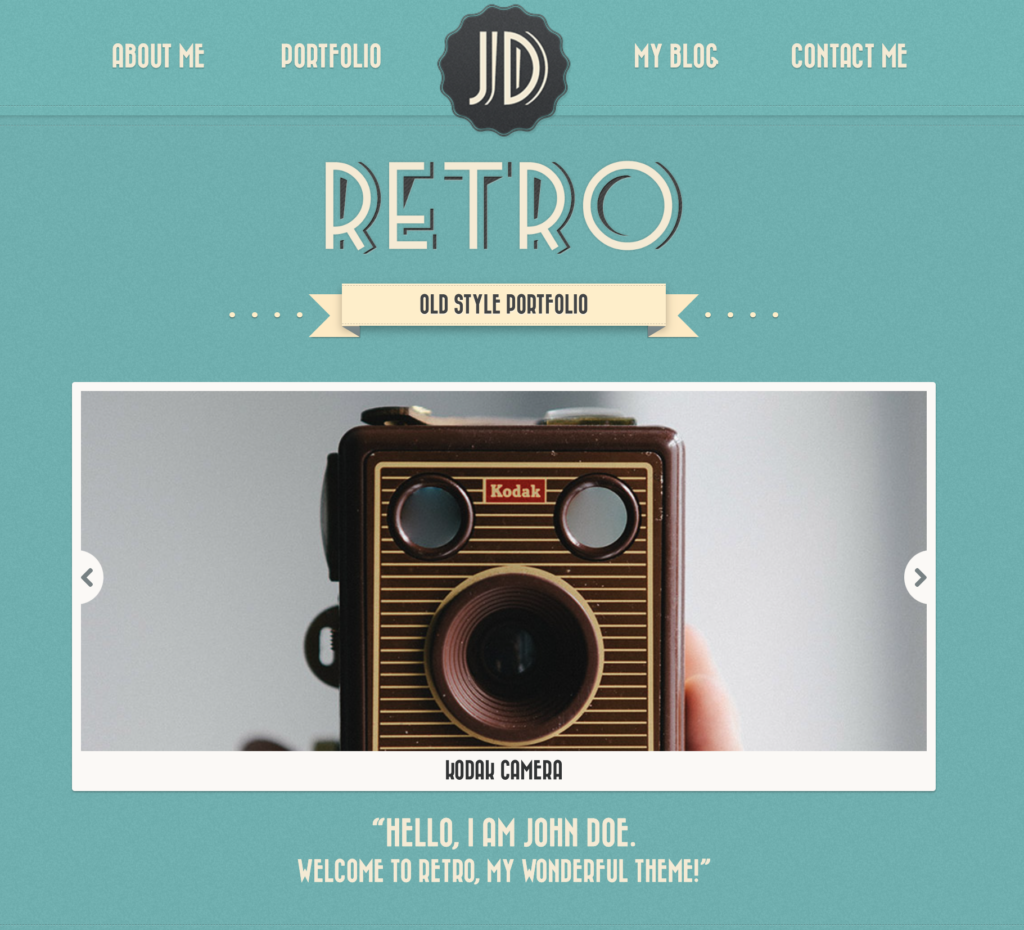Retro Portfolio : Retro Portfolio is a vibrant and colorful theme designed for creatives. Its vintage design is perfect for showcasing portfolios with a nostalgic touch. The theme includes custom widgets, multiple layout options, and is fully responsive.