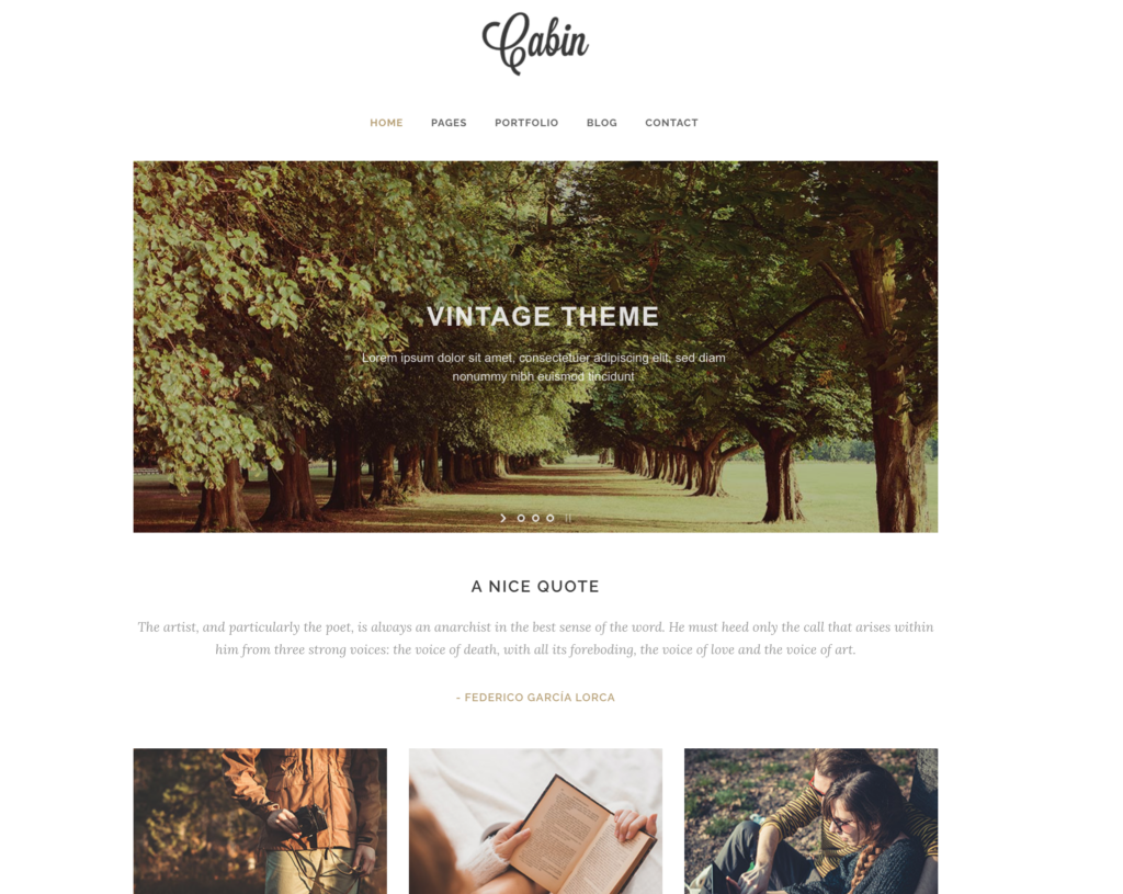 Cabin: Cabin is a beautiful, vintage-inspired WordPress theme. It features a classic design with elegant typography and customizable layouts. The theme is perfect for bloggers, creatives, and small businesses looking for a nostalgic touch.